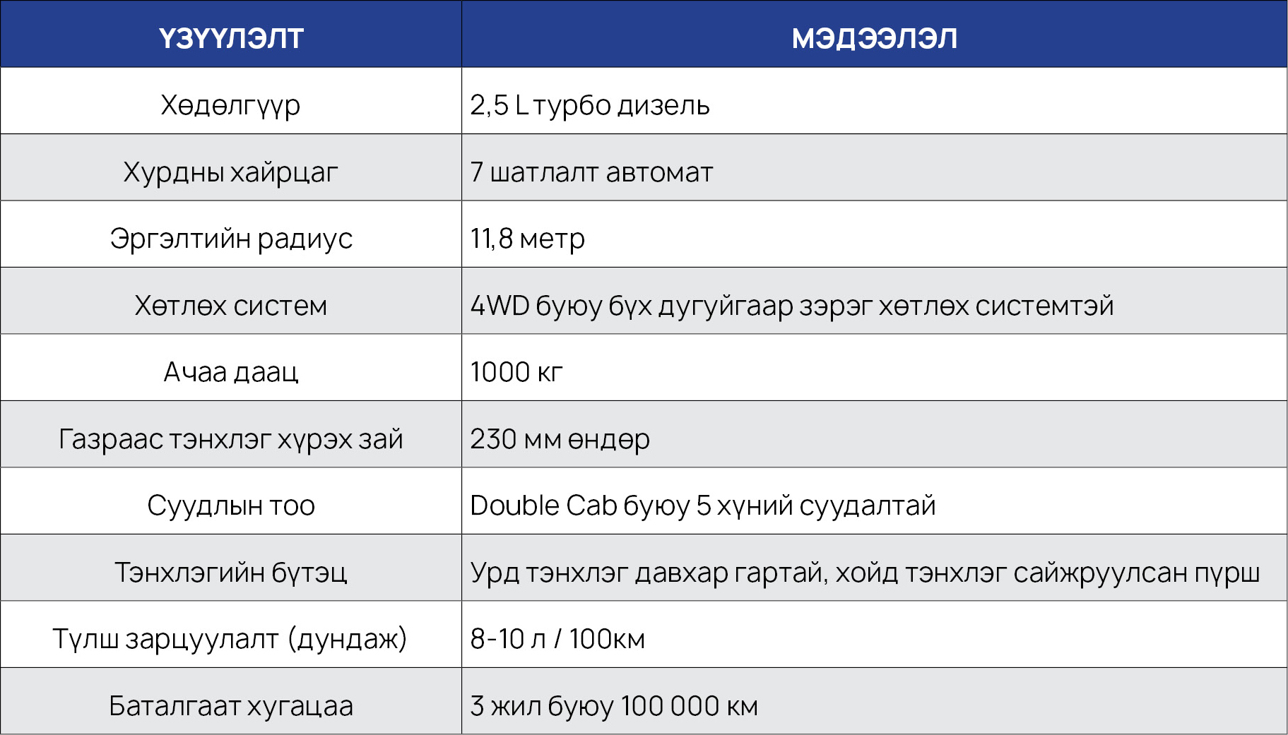 Хүснэгт 1. Nissan Navara D23 - ийн техникийн үзүүлэлт