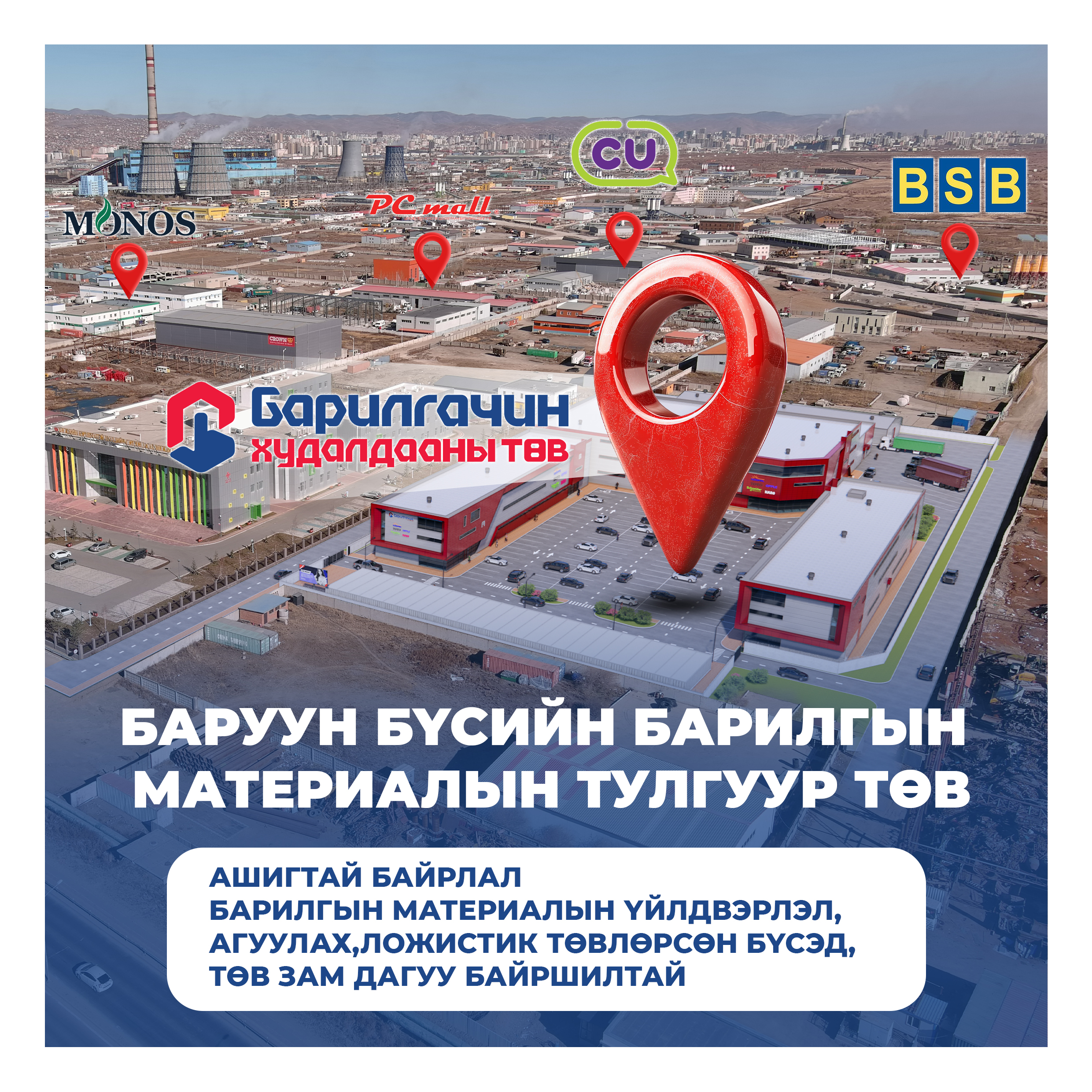 Засгийн Газрын барилгын материалын ханган нийлүүлэлтийг нэмэгдүүлэн үнэ тогтворжуулах зорилтыг хэрэгжүүлэх, Нийслэлийн төвлөрөлийг бууруулах, түгжрэлийг арилгах бодлогын хүрээнд байгуулагдсан “БАРИЛГАЧИН” худалдааны төвд одоогоор 200 гаруй аж ахуй нэгж үйл ажиллагаагаа явуулж 5,000 гаруй нэр төрлийн барилгын материалыг зах зээлд нийлүүлж байна.