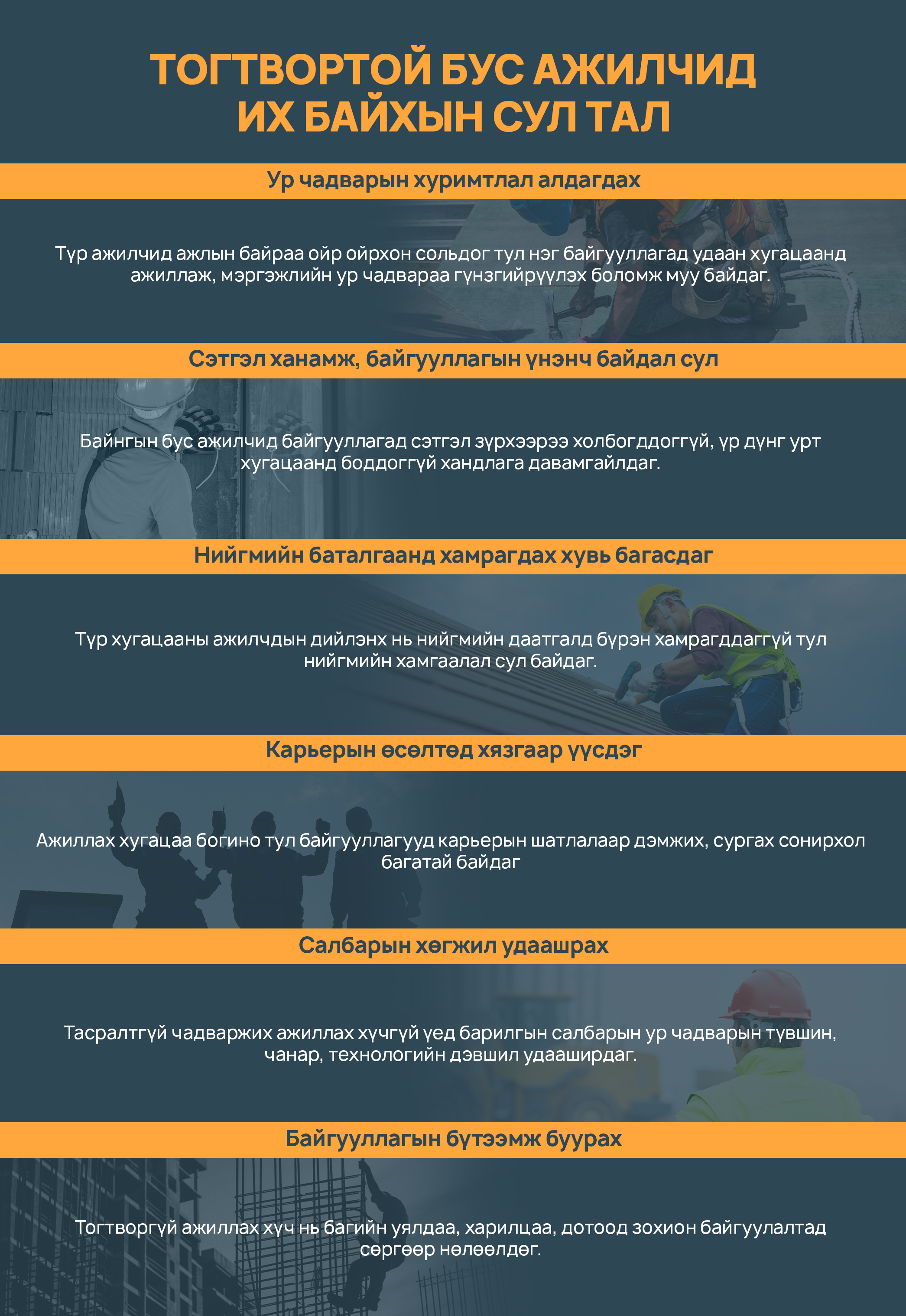 Монгол Улсын барилгын салбар дахь ажлын байрны тогтвортой байдал ба карьерын уялдаа