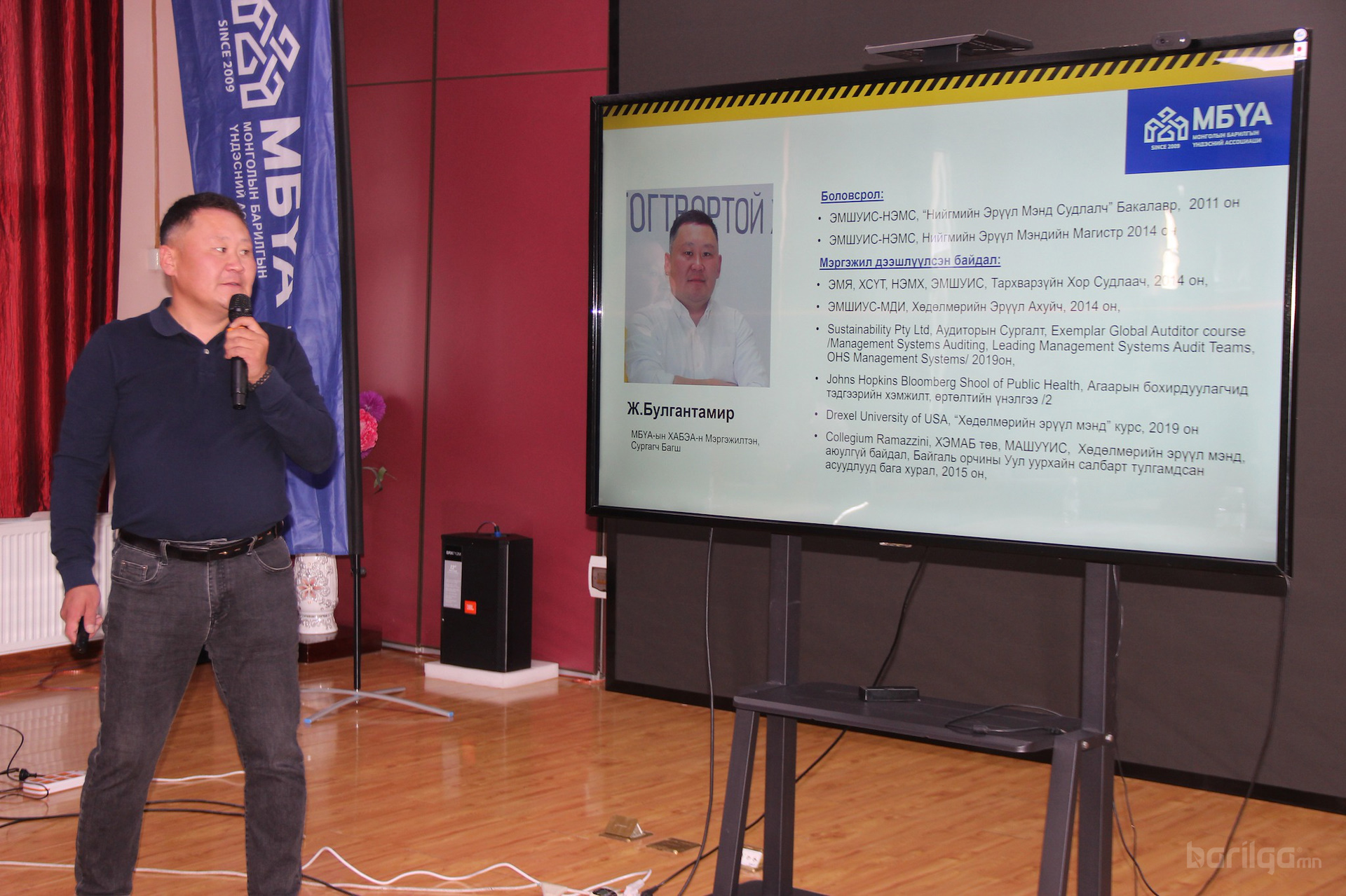 Монгол Улсад барилгын салбар үүсч хөгжсөний 99 жилийн ойг угтан Монголын Барилгын Үндэсний Ассоциаци ТББ нь Хот байгуулалт, Барилга, Орон сууцжуулалтын яам, Барилгын хөгжлийн төв, Монголын Барилгын Инженерүүдийн Холбоотой хамтран зохион байгуулсан уг сургалт нь барилгын салбарын ХАБЭА-ын хууль тогтоомж, эрсдэлийн удирдлага, зохион байгуулалт, байгууллагын ХАБЭА-ын чадавхыг сайжруулахад чиглэсэн бөгөөд болзошгүй осол, эрсдэлээс урьдчилан сэргийлэх арга замуудыг танилцуулсан юм.