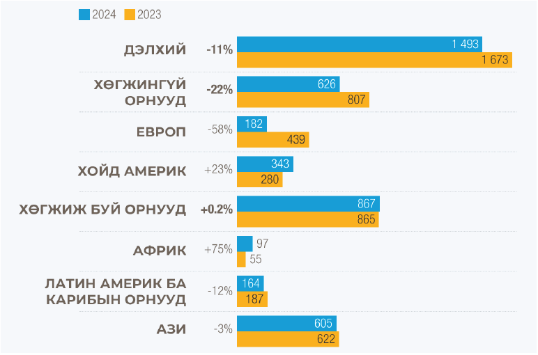 НҮБ - ын World Investment Report буюу Дэлхийн хөрөнгө оруулалтын 2025 оны тайланд дурдсанаар 2024 онд дэлхийн улс орнууд хоорондоо 1,4 их наяд ам.долларын хөрөнгө оруулжээ.