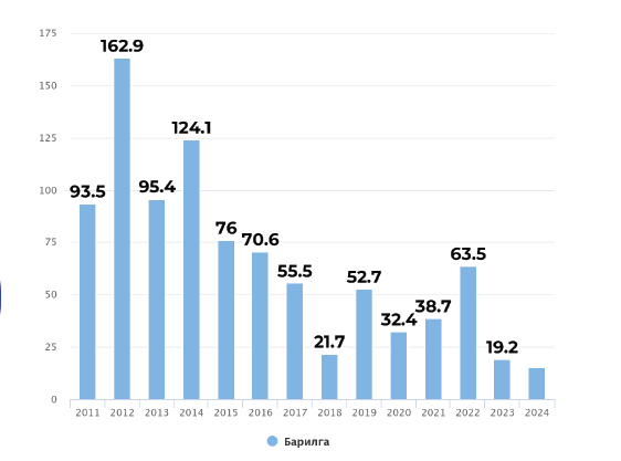 (2011-2024 онд барилгын салбарт орж ирсэн гаднын хөрөнгө оруулалтын хэмжээ, сая ам.доллар)Г.Батзориг: Өөрсдийн нөөц боломжоо бодитой тооцохгүйгээр том төсөл хэрэгжүүлнэ гэвэл хий хоосон мөрөөдөл болно