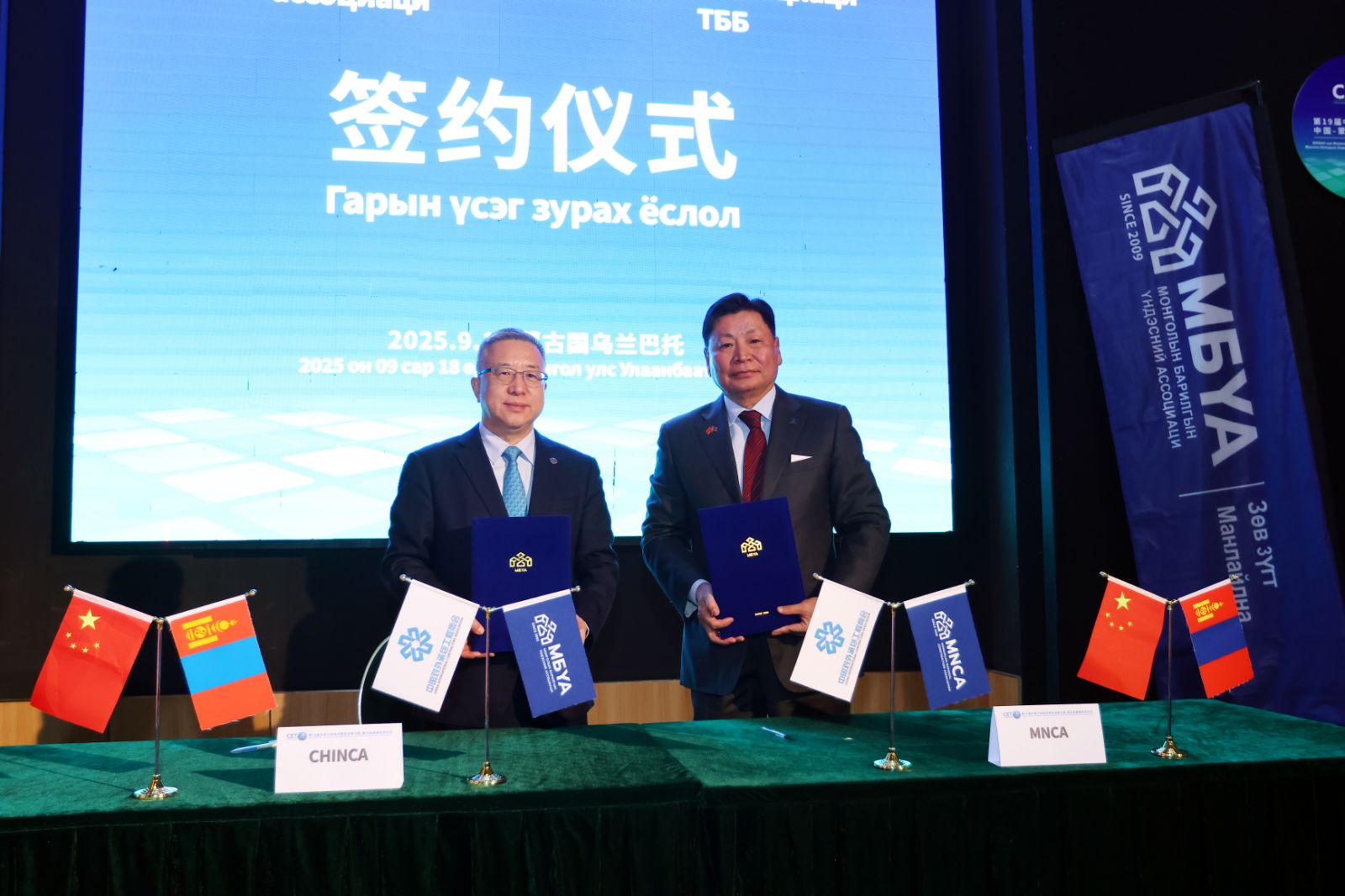 Монголын Барилгын Үндэсний Ассоциаци ТББ (МБҮА) нь БНХАУ-ын Олон улсын гэрээлэгчдийн нийгэмлэг (CHINCA)-тэй албан ёсны хамтын ажиллагааг эхлүүлж, барилгын салбарын төсөл хэрэгжүүлэгчдийг холбох гүүр болон ажиллахаар боллоо. Санамж бичигт гарын үсэг зурах ёслол 2025 оны 9-р сарын 18-нд зохион байгуулагдав.