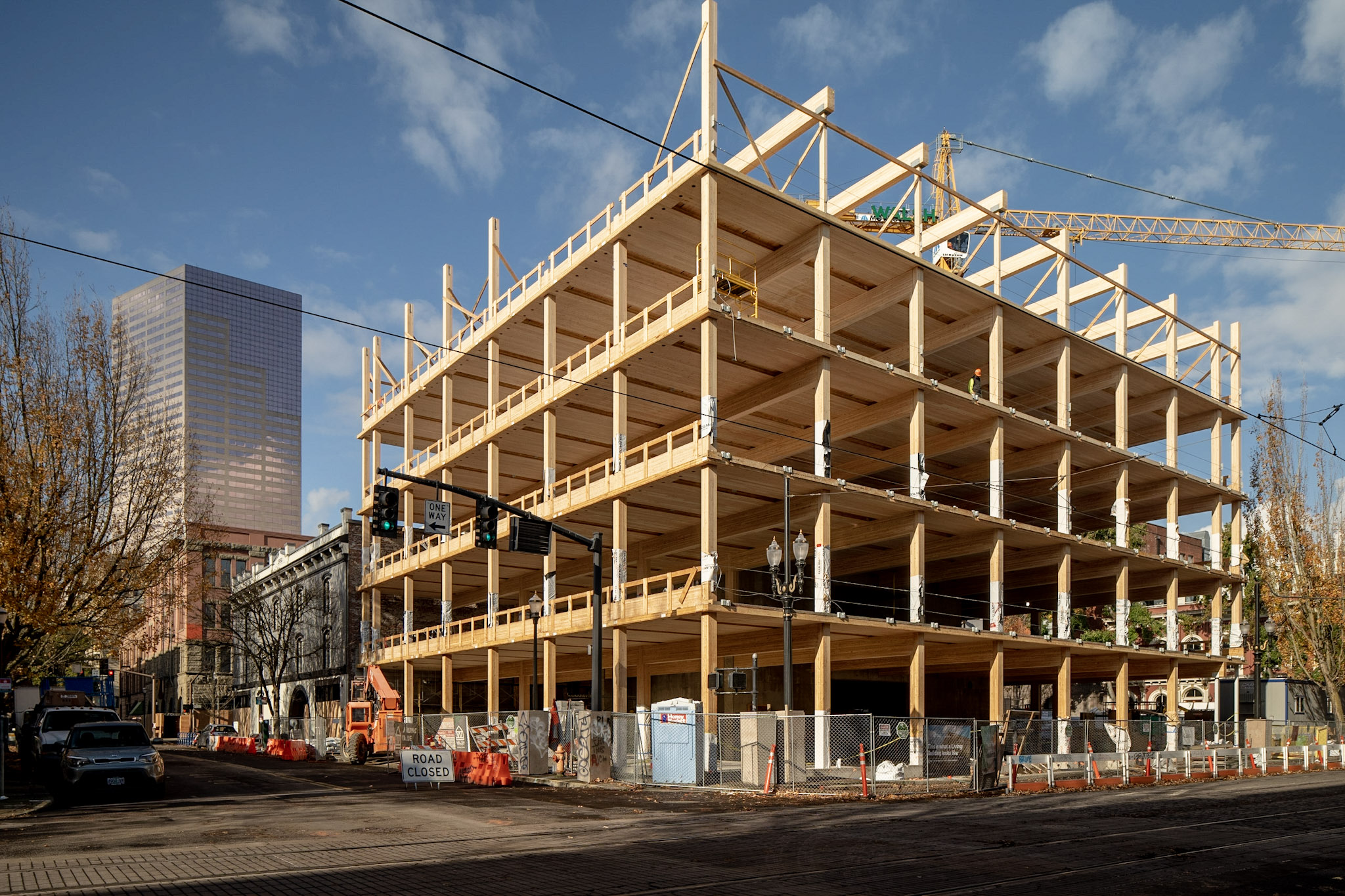 CLT /маш бат бөх, тогтвортой модон хавтан бөгөөд “модон бетон” гэх нь бий/ ба Glulam /бетон, гангийн оронд ашиглаж болдог, налуу, муруй хэлбэртэй модон дам нуруу/ бүтцүүд нь зөвхөн тогтвортой модон материал биш, бүтээлийн гоо зүй, ил гаргасан хийцийн уран хийц болон ажиллаж байгаа нь архитектур-инженерчлэлийн цогц уялдааг харуулдаг.