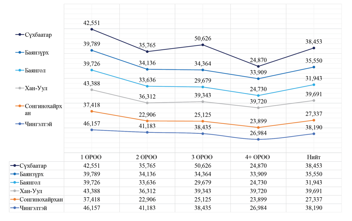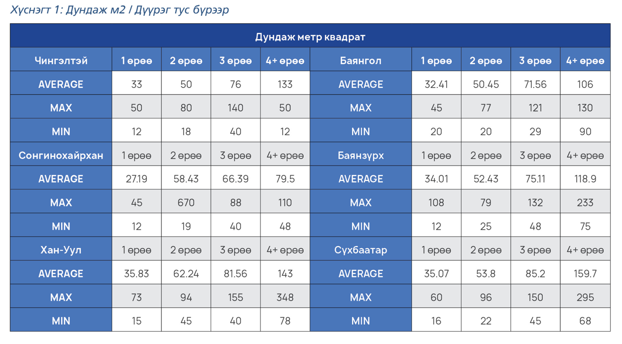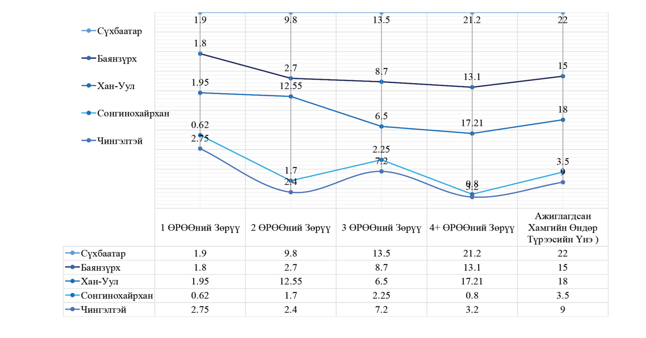 Харин нийт дундаж түрээсийн үнийн хувьд хамгийн өндөр түрээстэй дүүргийн хувьд Хан-Уул дүүрэг 3.18 сая, хамгийн бага түрээсийн үнэ ханштай нь мөн адил Сонгинохайрхан дүүрэг байгаа юм.