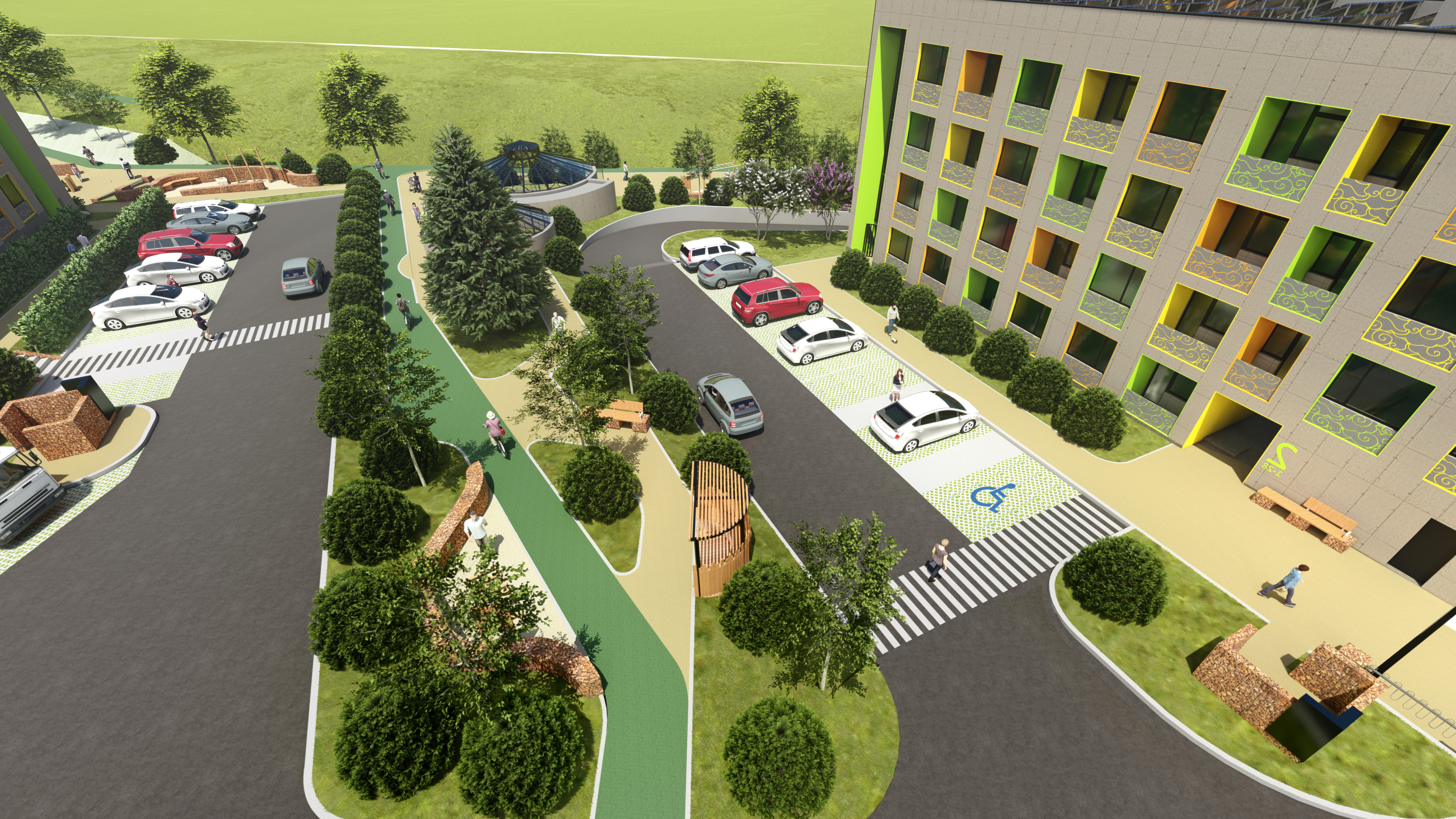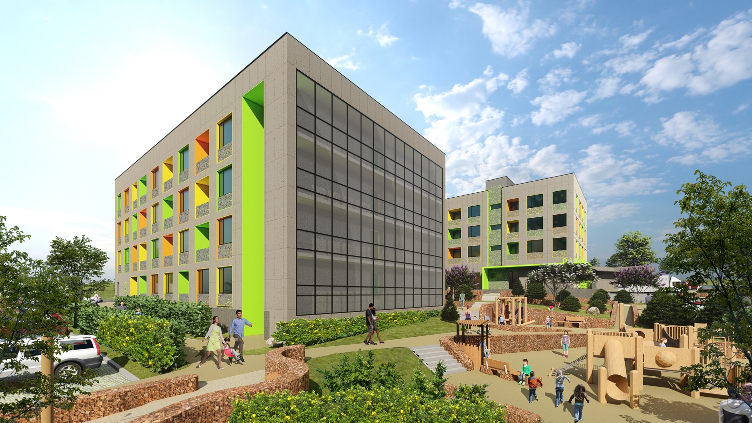 А барилгын урд метал каркас бүхий 4 давхар хүлэмжийн барилга төлөвлөсөн. Уг хүлэмж нь үндсэн барилгатай давхар бүрт нийтийн хонгилоор холбогдоно. Энд оршин суугчид хүлэмжийн аж ахуй эрхлэх боломжтой.