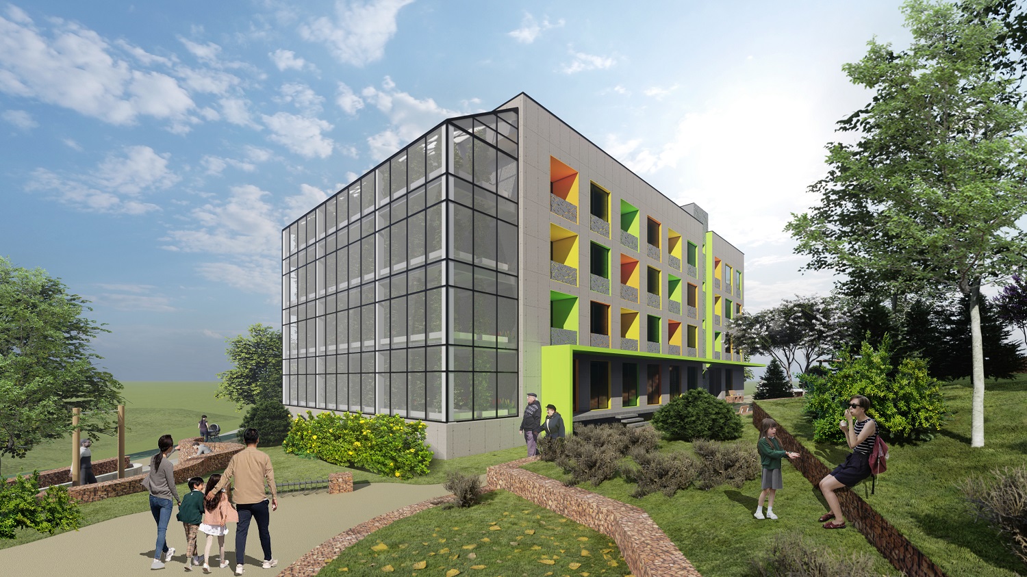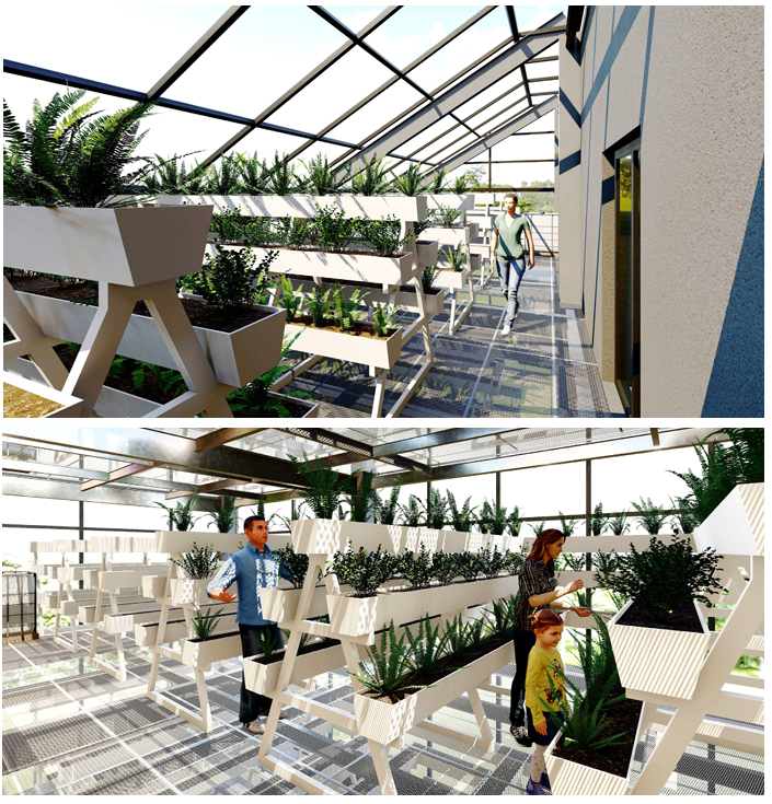 Оршин суугчдын амьдралын чанарыг дээшлүүлэх, хүнсний хангамжийг нэмэгдүүлэх, шинээр ажлын байр бий болгон амьжиргааг дэмжих зорилгоор давхар хүлэмжийн барилга төлөвлөжээ. Нийт 320м2 талбай бүхий гурван улирлын хүлэмж байх бөгөөд хүлэмжийн ар хананд дулааны масс хадгалах хана төлөвлөснөөр сэрүүний улиралд дотор орчныг эрчим хүчний хэмнэлттэйгээр халаах боломж бүрдэнэ. Урд талын бүрхүүлийг хоёр давхар поликарбонатаар шийдсэн нь дулаан алдагдлыг багасгах зорилготой. Тариалалтыг тавиурт суурилсан системээр зохион байгуулж, усалгааг цэвэр усны шугам болон дээврийн усыг хуримтлуулан ашиглах системтэй байхаар төлөвлөсөн байна.