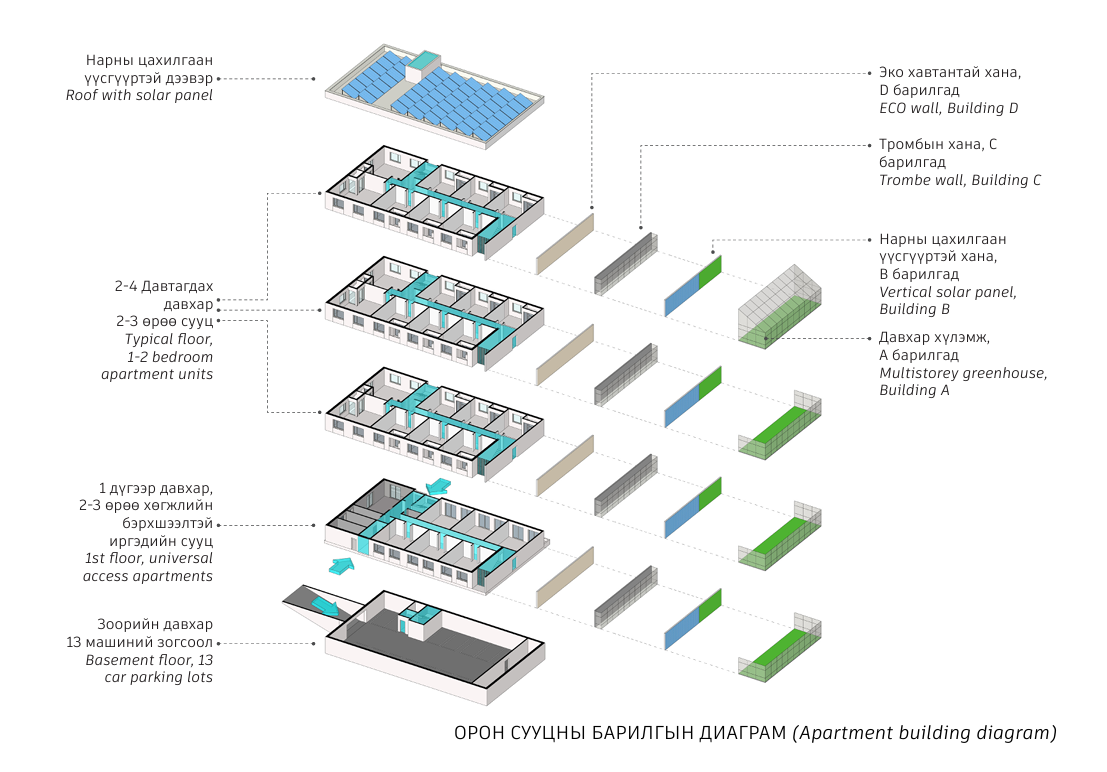 Улаанбаатар хотын ногоон орон сууц төслийн 110 айлын орон сууцыг хариуцсан төслийн менежер, инженер П. Наранбаатар “Ногоон барилгын стандартыг хангахын тулд онцлох олон шийдлүүдийг энэхүү төсөлд хэрэгжүүлсэн”