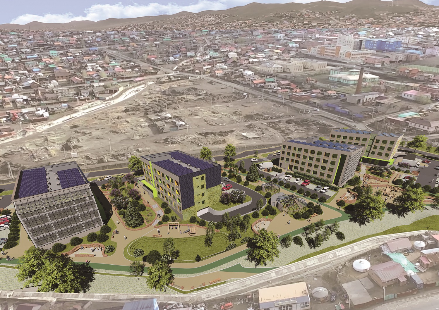 Азийн Хөгжлийн банк болон Монгол Улсын Засгийн газрын хооронд байгуулсан хэлэлцээрийн дагуу гэр хорооллыг дахин төлөвлөх зорилгоор ногоон орон сууцны төсөл нь хэрэгжиж байгаа билээ. Төслийн хүрээнд 5 мянган айлын ногоон орон сууцны хорооллыг барихаар төлөвлөсөн бөгөөд эхний ээлжид Баянхошуу, Шар хад дэд төвүүдэд газар чөлөөлөлт хийгдсэн 5,6 га талбайд нийт 800 айлын орон сууцыг барихаар 2023 оны 7 сараас барилга угсралтын ажил эхэлсэн. Үүний эхний 110 айлын орон сууцыг улсын комисс шалгаж, үүрэг даалгаврын биелэлтийг үндэслэн хүлээж авсан бөгөөд энэ 11 сарын 11-нд албан ёсоор ашиглалтад оруулах дүгнэлт баталгаажсан.