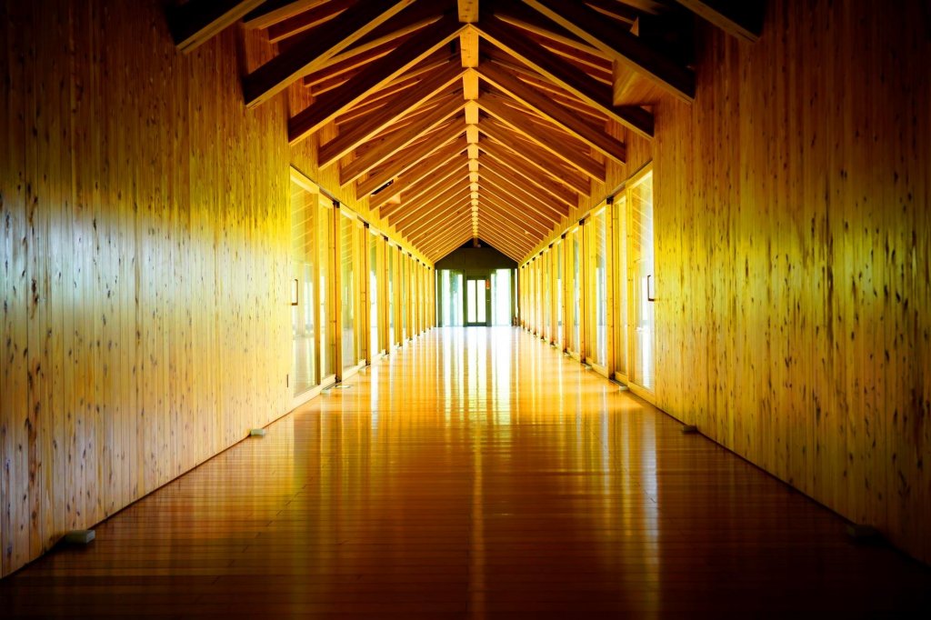 Хэдийгээр барилгын төв багана нь ган материалаар хийгдсэн ч, гаднах модон хийцлэл болон инженерчлэлийн шийдэл нь нийт массыг газар дээр ачаалал багатай, агаарт хөвж буй мэт харагдуулж байгаа нь архитекторын ур чадварын оргил гэж хэлж болохоор юм.