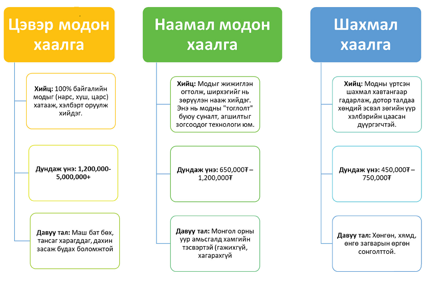 Монголын зах зээл дээр Модон хаалгыг ерөнхий дараах 3 бүлэгт хувааж үзэх ба: