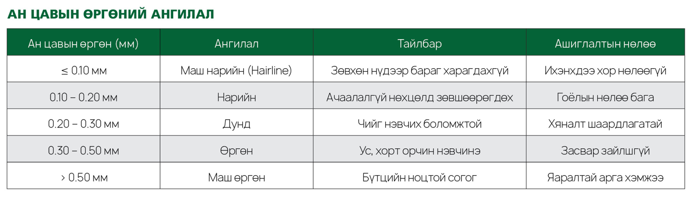• Ан цав (өргөн, урт, чиглэл)