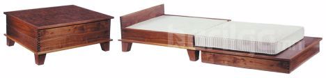 Торонтогийн Julia West Home-ийнхон тавилгын шийдэлд үргэлж шинэчлэл хийсээр иржээ. Эхний зургийг хараарай. Зүгээр л цайны ширээ байгаа биз дээ. Ирсэн зочиддоо цай, идээгээ тавин зочилоход тун тохиромжтой. Гэхдээ энэхүү ширээг бас өөр зориулалтаар ашиглаж болно. Ширээний тавцан хэсгийг дэлгэн нээвэл дотроос нь зөөлөн матраас гарч ирнэ. Түүнийг хойш нь дэлгээд л ор болж байгааг удаах зургаас харж байгаа байх. Ингээд л ирсэн зочноо унтуулах орны асуудал шийдэгдчихлээ. Нэг сумаар хоёр туулай буудах гэдэг шиг ор, ширээний асуудлыг хамтад нь шийдэхээс гадна, зай багатай орон сууцанд үнэхээр тохиромжтой энэ тавилгын үнэ тийм ч үнэтэй биш гэж танилцуулгад нь дурдсан байсан.