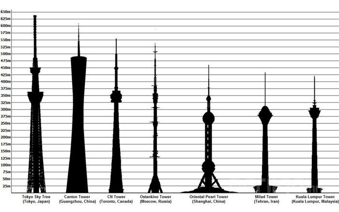 Дэлхийн хамгийн өндөр цамхгуудыг харьцуулсан график.