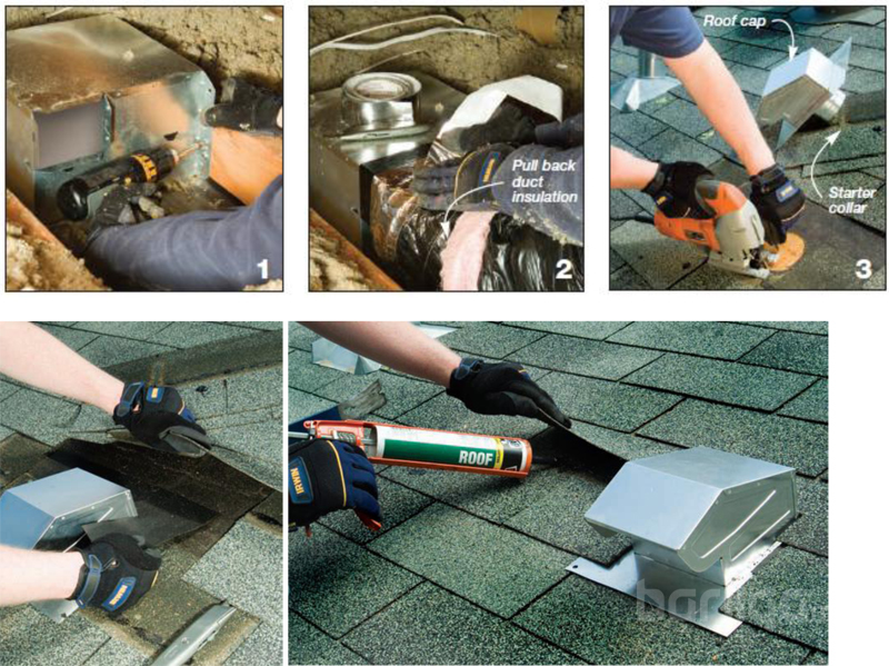 - Дээвэрт агаар гаргах хоолойн малгайг дээвэрт ус оруулахгүй байхаар бэхлэж силконоор наана.