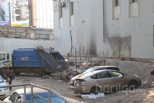 Гэтэл орон сууцан дотроо хогийн бункер байхгүй учраас оршин суугчид нь байрныхаа үүдэнд томоос том торон хашаатай хогийн цэгийг бий болгожээ. Салхитай хүйтэн зэврүүн өдөр хаягдал гялгар уут, цаас орцны үүдээр хөглөрч, агаарт эргэлдэх нь мэдээж.