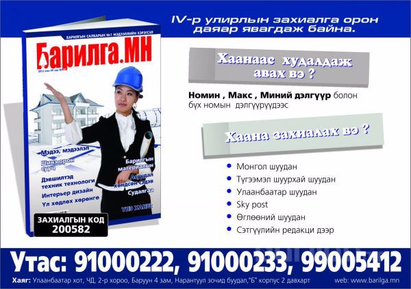 "Барилга.МН" сэтгүүлийн захиалгын код: