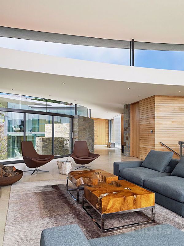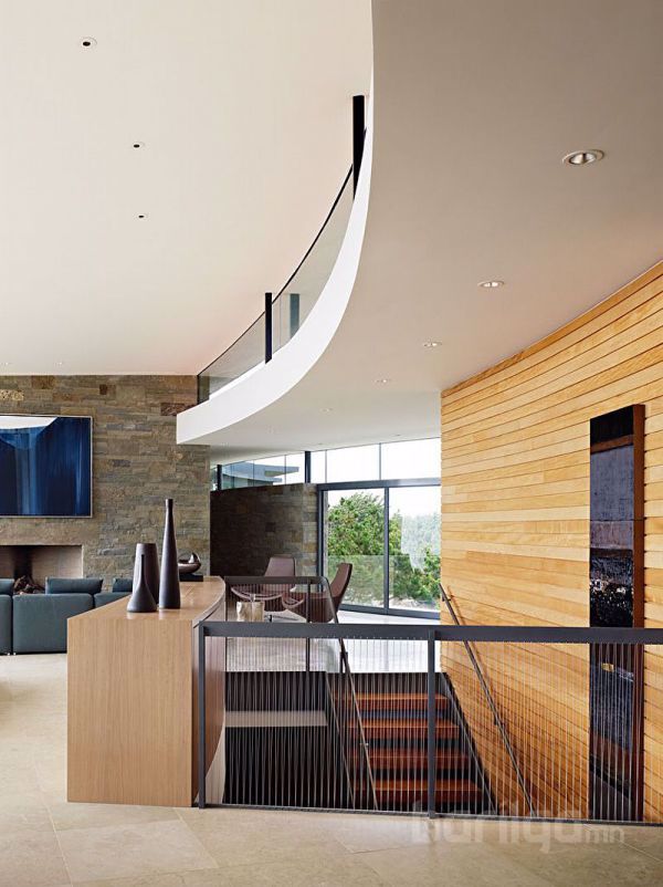 Шилэн хананаас гадна дотоод засалд байгалийн материалыг ашиглан, тайвшрал авчирдаг бор, цагаан, шар, саарал өнгөний зохицлыг гайхмаар гаргасан байна. Сууц хоёр хэсгээс бүрдэх бөгөөд коридороор холбогдох ажээ.