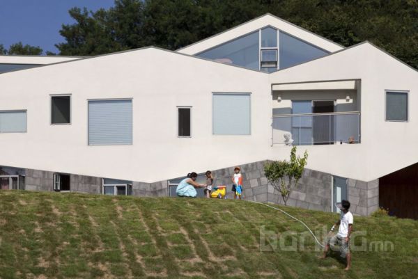 Дотор интерьер болоод гадна тал нь ер бусын, өвөрмөц бас хөгжилтэй гэмээр загвартай энэхүү байшин “Moon Hoon”-ий архитекторчдын багийнхны бүтээл бөгөөд Өмнөд Солонгосын Чангбукт баригджээ. Гаднах загвараасаа эхлээд тун ч өвөрмөц бөгөөд чулуун суурьтай холбогдох орчин үеийн хана, дээврийг нь байгалийн онцлог төрхтэй төгс хослуулсан байна. Гаднаас нь харахад урьд өмнө харж байсан байшингуудаас илүү содон харагдаж байгаа биз. Хананы цаана өч төчнөөн гайхашруулах зүйлс та бүхнийг хүлээж байгаа.