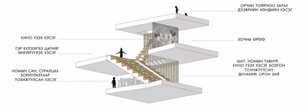 Дотоод заслын орчин цагийн гүйцэтгэлд дулаан мэдрэмжийг төрүүлэх зөгийн балан өнгөт шал, тааз хэсгийн засал өнгө нэмсэн байна.