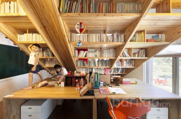 Шатны доод хэсэгт байрлах булангийн хэсгийг ажлын өрөөний зориулалтаар зассан нь хүүхдүүд гэрийн даалгавраа энд хийхэд тун ч тохиромжтой.