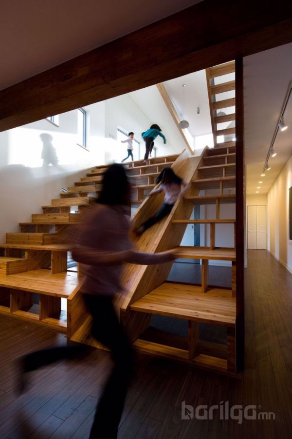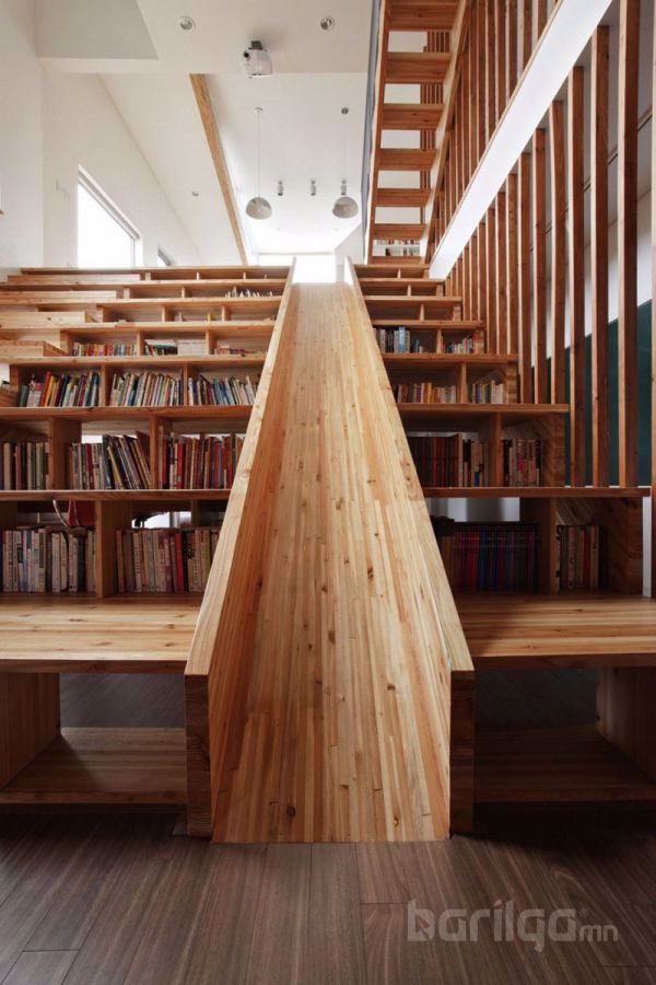 Байшингийн дотор хэсгийг харсан уран барилга сонирхогчид дуу алдахаас аргагүй. Тэгвэл бяцхан оршин суугчдын хувьд жинхэнэ тоглох талбай нь болно. Дотоод заслын нэг онцлог гэвэл шат нь хэд хэдэн үүрэгтэй. Хүүхдүүд гулгах хэсэгтэйгээс гадна дээш өгсөж, доош буух үүрэгтэй шатнаас гадна номын тавиурын үүргийг гүйцэтгэнэ. Мэдээж хамгийн сайн чанарын мод. Ямар ч насны хүүхдүүдийн хувьд хамгийн дуртай тоглоом нь гулсуур шүү дээ.