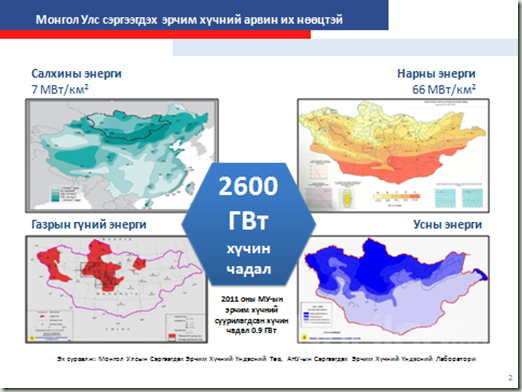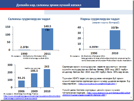 Танилцуулга-3: Монголын Говийн нар, салхины эрчим хүчний нөөц, харьцуулахад