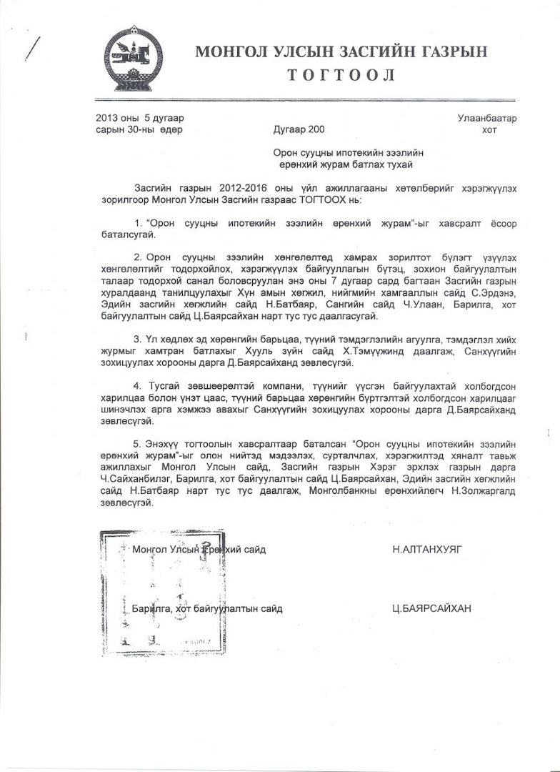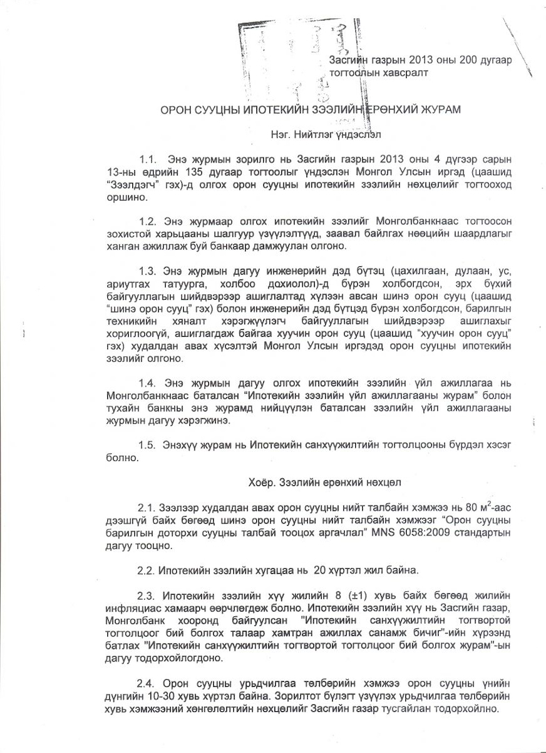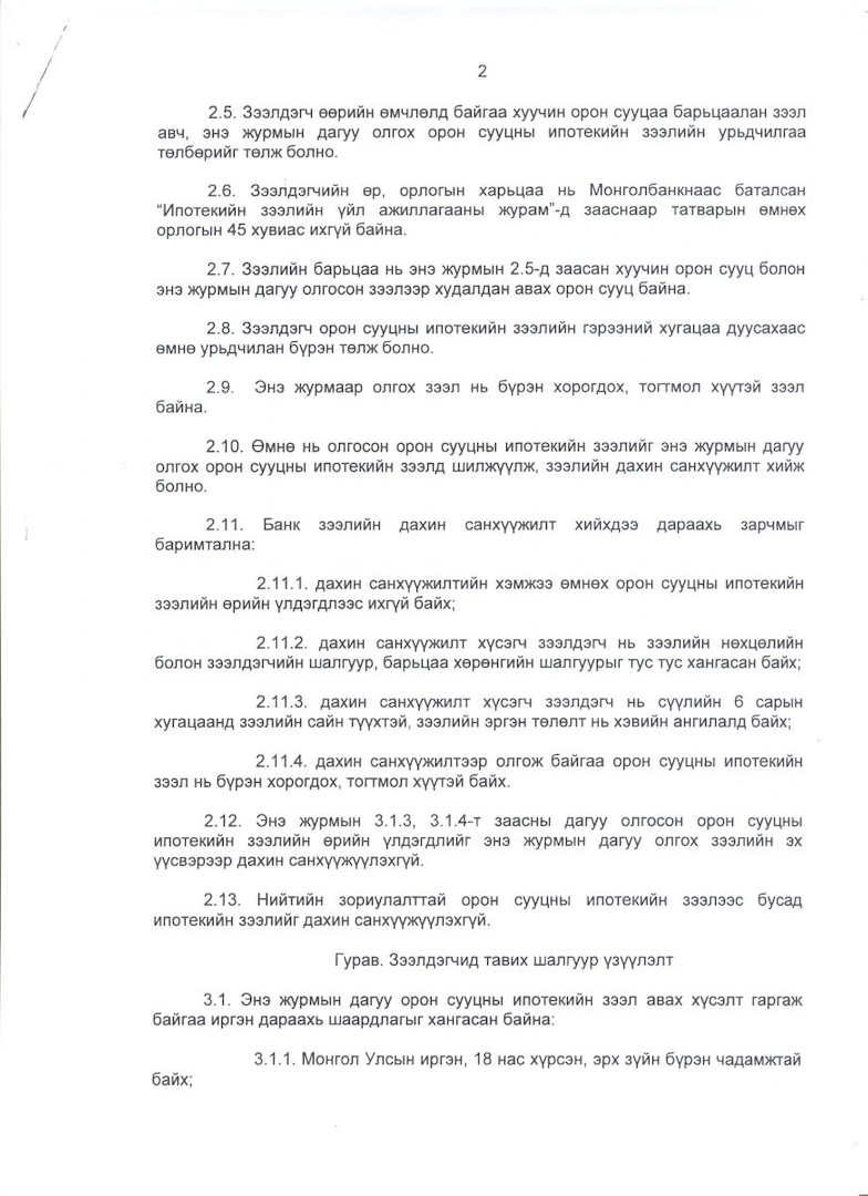 Орон сууцны ипотекийн зээлийн ерөнхий журам