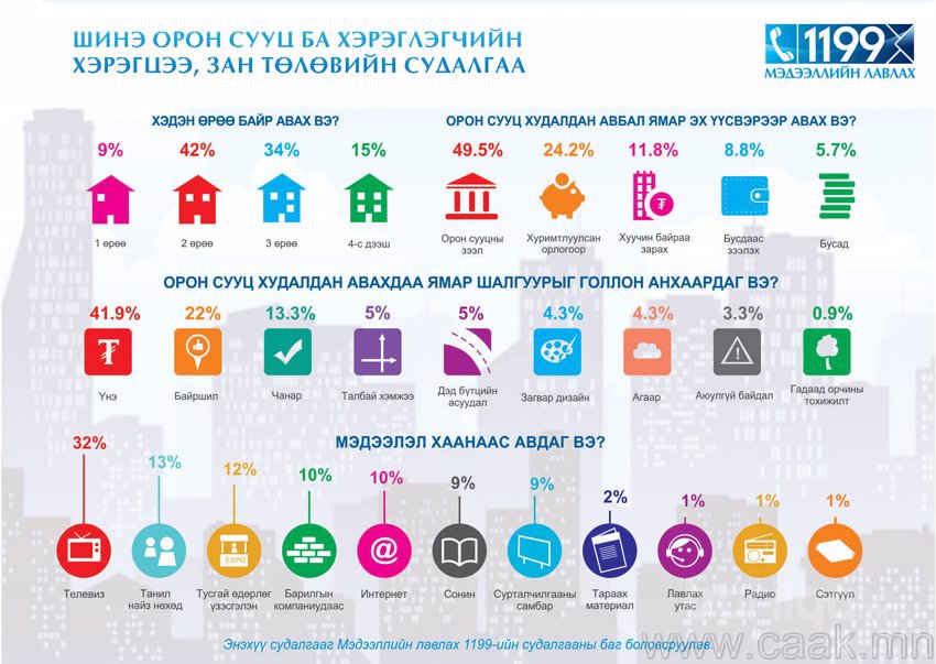 Орон сууцны үнэ ханш болон хэрэглэгчийн хэрэгцээ, зан төлөвийн талаар Мэдээллийн лавлах 1199-ийн судалгааны баг энэхүү сонирхолтой судалгааг боловсруулжээ.