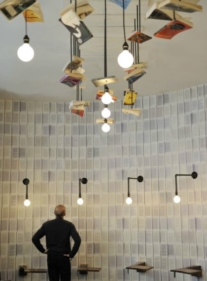 “Ухаалаг” өнгө аясаа хадгалахын тулд гэрлэн бүрхүүлийг хүртэл номоор чимэглэж өгчээ.