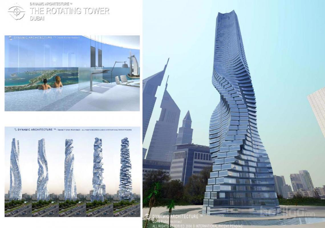 Арабын нэгдсэн Эмират улсын Дубай хот гоё сайхан барилгуудаараа жуулчдын анхаарлыг хэдийнээс татах болсон билээ. Тэдний нэг өнгөрсөн жил ашиглалтад орсон Эргэдэг байшин юм. 420 метрийн өндөртэй 80 давхар энэ барилгын зураг төслийг Италийн архитектурч Давид Пишер гаргажээ.