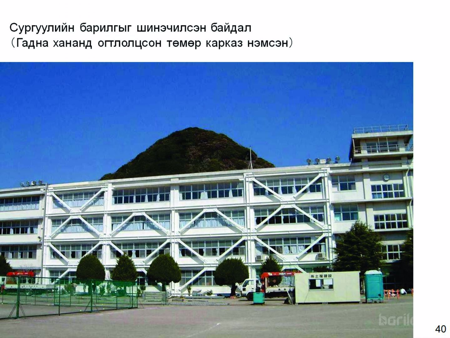 Ингээд газар хөдлөлтөд тэсвэртэй барилга нэвтрүүлэхэд чиглэсэн Япон улсын барилгын норм ба дүрмийн тогтолцооны талаар товч танилцуулъя.