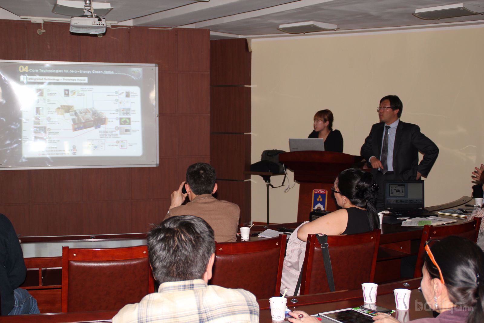 БНСУ-ын Барилгын технологийн Хүрээлэнгийн захирал Choi, Gyeong Seok семинарт хүрэлцэн ирсэн зочдод өөрийн улсад нь хэрхэн ногоон барилгын бодлого хэрэгжиж байгааг дуулгасан. Мөн шинэ хуучин барилга, орон сууцны дулаалгыг хэрхэн шийдэж өгч байгааг илтгэсэн ведио бичлэг үзүүлсэн. Байгаль экологид сөрөг нөлөөгүй, хүний биед харшлахгүй, дулаан сайн барьдаг, галд тэсвэртэй шүршдэг хөөсөнцөрөн бүтээгдэхүүнээр шинэ хуучин барилга, орон сууцны дулаан алдалтыг бүрэн шийдэх боломжтойг хэлж байлаа. Мөн БНСУ өнөөдөр эрчим хүчийг хэмнэж, түүнчлэн хийн зүлшгий хэрэгцээгээ хүртэл багасгаж орлуулах бүтээгдэхүүн бүтээхийг эрэлхийлж байгааг энэ үеэр хэлэв.
