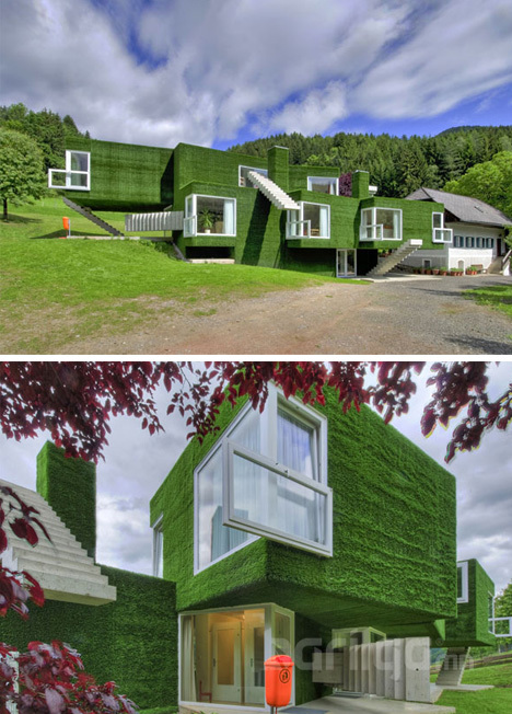 Австралийн хөдөө талд Вейчлбаур Ортис уран барилгын студи өвсөөр бүрхэгдсэн тэгш дөрвөлжин нэг байшингийн зураг төслийг гаргаж барьснаар эргэн тойрны ногоон байгальдаа зохицон тун хачирхалтай загварлаг шийдлийг бий болгожээ.