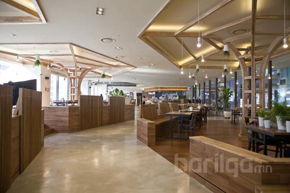 Яг дуурайхад төсөв мөнгө хэтрэхээр байвал төстэй хэлбэрээр засч тохижуулахад болохгүй зүйл үгүй. Ялангуяа рестораны гол хэсэгтээ тулгуур том баганатай газрууд үүнийгээ ургаа мод хэлбэрээр ашиглах нь том зай эзэлсэн хэрэггүй нэг зүйл биш, харин ч хүмүүсийн хараа булаасан өвөрмөц хэсэг болж хувирах нь ээ. Мөн модон тавилга байгалийн гэх өнгө аясыг илүү тодотгож өгдөг байна.