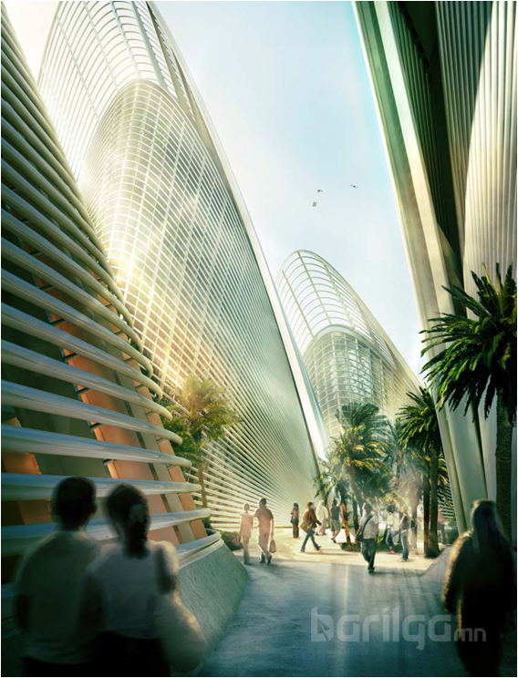 Хөнгөн ган бүтээц нь дотоод орон зайг илүү сүр жавхлантай хуваарилах боломжийг олгосон ба үзэсгэлэнгийн танхимууд, дээш нээлттэй хүлээн авах танхимын бүтээцтэй бөхлөгддөг. Түүнчлэн үзэсгэлэнгийн танхимууд нь дээшээ яруу найргийн болон бүжгийн үзүүлбэрийн орон зай, дэлгүүр, кафенууд гэх мэтчилэн дотоод орон зай бүрт тохирсон, бүс нутгийн онцлогтой харгалзах гэрэлтүүлэг оруулах боломжийг олгосон ажээ.