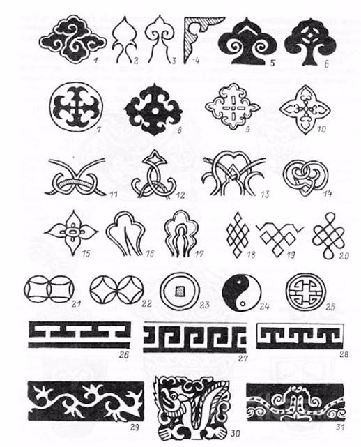 Тухайн уран бүтээлийн оюуны мэлмий, утга бэлгийн санааг орон зай, орчин ахуйд давтагдашгүй уран сайхнаар илэрхийлэх хамгийн гол хэрэглүүр нь хэлбэр дүрс болно. Дүрсийн томоохон илрэл бол улсүндэстнийхээ угалз бөгөөд угсаатны овог аймаг, улс үндэстний эрхэмлэдэг зүйлсийг илэрхийлсэн билэгдэлтэй байдаг.Үүний баталгаа нь дүрслэлүүдэд нар, сар, галыг,зэр зэвсгийг,монгол хүний эрхэмлэдэгхүлэг морийг гэх мэтчилэн дүрсэлж ардын уран сэтгэхүйн онцлог олон хувилбар арга бэлгээр өсөн нэмэгдэж, эд өлөг элбэгших, өнөр өтгөн байх, эцэс төгсгөлгүй мөнхийн бэлэгдлийг бэлэгддэг.
