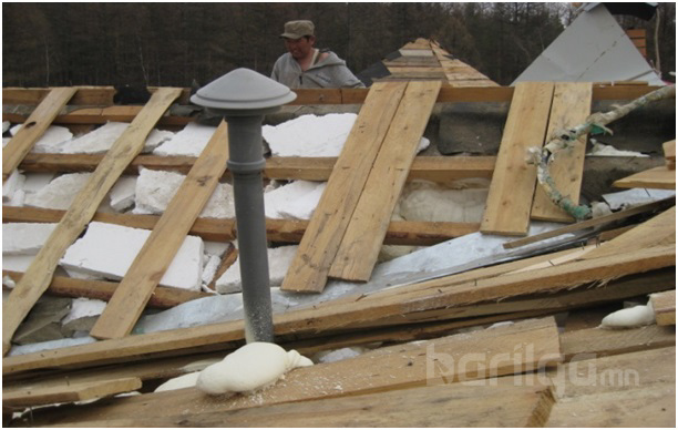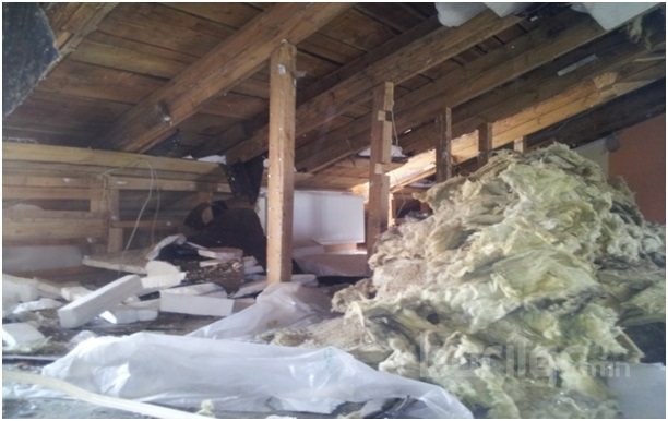 1. Байшин сууцны мансарданд шилэн хөвөнгөөр хийсэн дулаалга үр дүнгээ өгөөгүй тул 2- 3 жилийн дараа буцаан авч дахин дулаалга хийж буй явц
