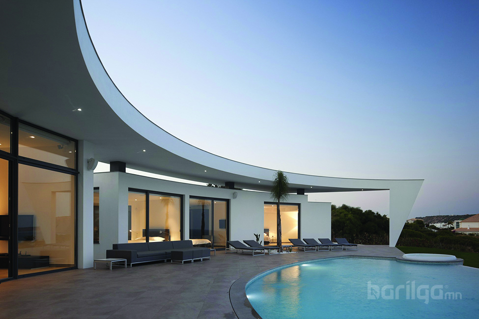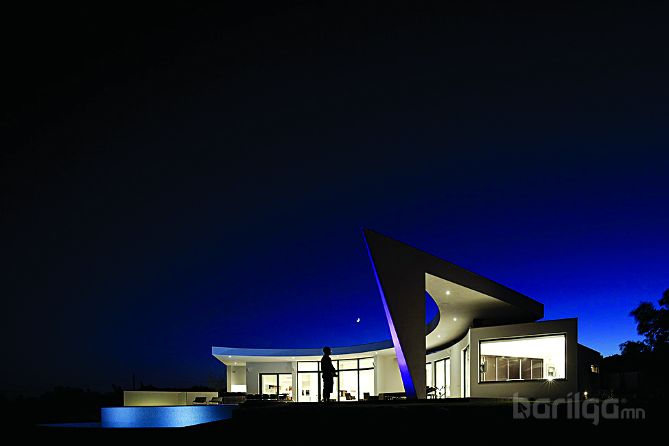 Байшингийн загвараас гадна байршил нь бусдын харааг эрхгүй булаана. Дугуйрсан хэлбэр нь байшингийн урд хэсэгт далайн эргийг санагдуулам усан санг байгуулахад тун ч зохицжээ.