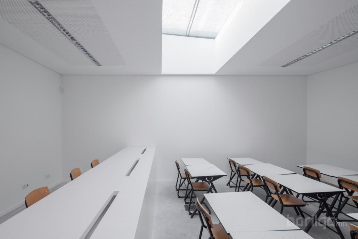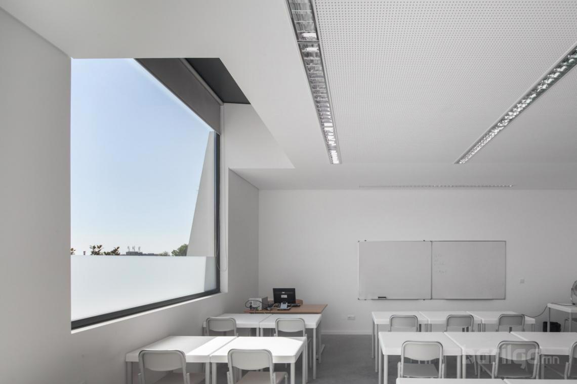 Барилгын дотор засалд зонхилох цагаан өнгө нь орон зайн мэдрэмжийг дээшлүүлдэг байна. Өргөн цэлгэр цонхнууд нь байгалийн гэрлийг чөлөөтэй нэвтрэх боломжийг олгодог. Судалгааны танхим, номын сан, сурагчдын чөлөөт цагаа өнгөрөөх заал, халуун усны барилга зэрэг хэд хэдэн байгууламж шинэ коллежийн төслийг бүрдүүлдэг ажээ.