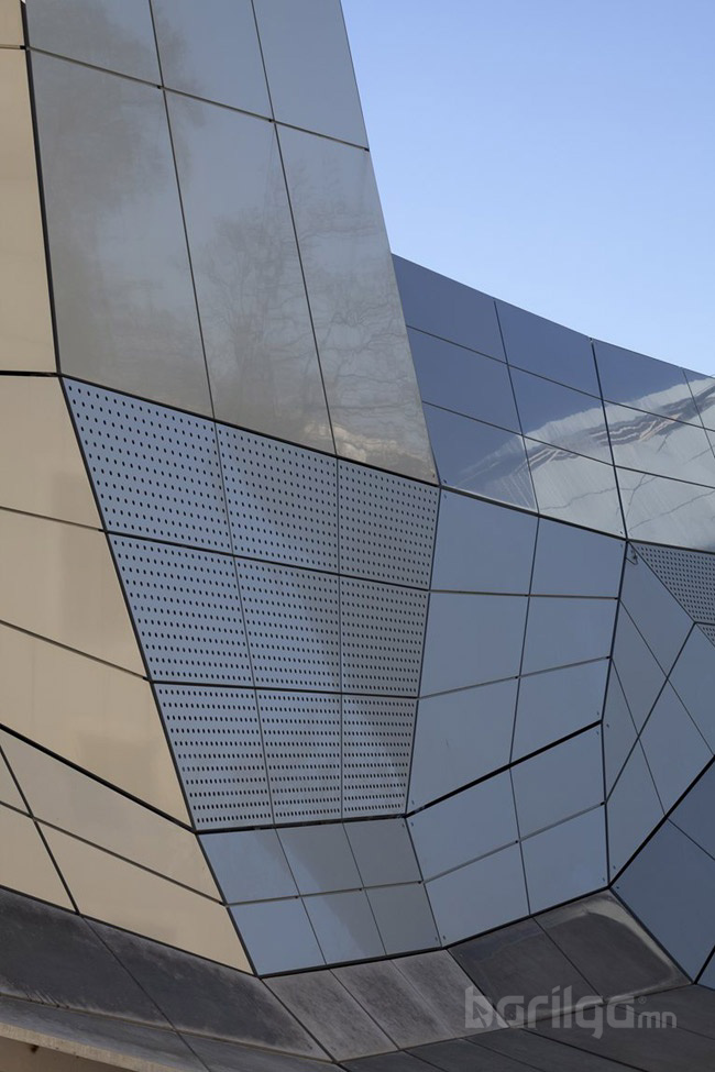 Барилгын гадна хэсэгт уран бүтээлчдийн программчилсан интерактив гэрлүүд бүхий хавтангуудыг байрлуулжээ. Дотроо нийт 3590 ам дөрвөлжин талбайтайгаас 443 шоо дөрвөлжин хэсгийг урлагийн бүтээлийн цуглуулгад, 1196 ам дөрвөлжин хэмжээтэй талбайг үзэсгэлэнгийн танхим, 215 ам дөрвөлжинг сургалтын лаборатори, бичиг баримтын архивт зориулан тохижуулсан бол 478 ам дөрвөлжин талбайд цэцэрлэг, цайны газар, удирдлагын хэсэг байрлана.