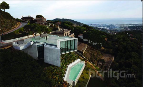 Энэхүү хаус нь Барселона хотын зах, Кабрилс хөндийн энгэр газрын оройд баригдсан. Өндөрлөг газрыг ашиглаж газар ухан, тэгшилж барьсан энэ сууцны дээврээс орчин тойрныхоо байгалийн гайхалтай үзэмжийг харж болно. Энэ сууц нь өндөрлөг газрын энгэр талыг бүхэлд нь ашигласан бөгөөд 2 давхар орон сууц юм.