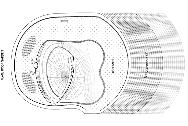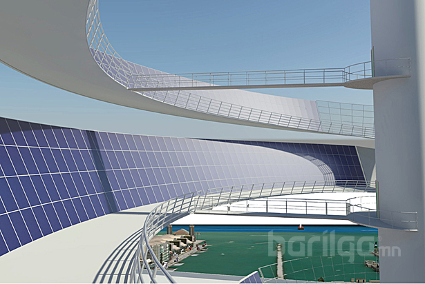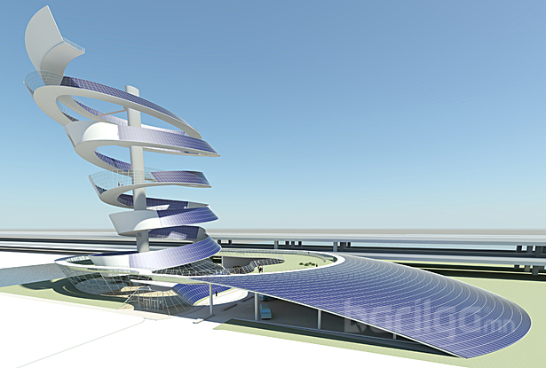 Иймд 610м өндөртэй аварга том бүтээн байгуулалтыг найдвартай бас хямд цахилгаанаар хангахаар нарны цахилгаан станцын эх зургийг гаргаж, барьж босгох ажлыг эхлүүлжээ. Хэлбэрийн хувьд мөн л ороомог хэлбэртэй бөгөөд газарт ойр хэвтээ маягийн ороомог байхаараа “Шовх ганжир”-аас ялгаатай. Бүтээгчид нь нарны цахилгаан станцын сонгодог жишээ болгохоор төлөвлөж байгаа бөгөөд байгууламжийн дотор үзэсгэлэнгийн танхим, хурлын заал байхаар тооцоолжээ.