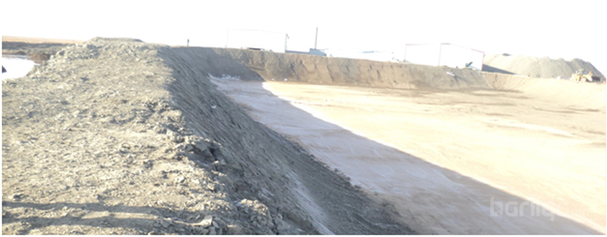 Ийнхүү бэлдсэн далангаа геомембран буюу геонийлэг материал бүхий хулдаасан хуйлмаг материалаар доторлоно. Доторлогооны бэлтгэл ажлын үед суурилуулах талбайн гадаргууг ажлын зургийн дагуу тэгшилж нягтруулсан эсэхийг шалгахын сацуу хонхор гүдгэр, ил цухуйсан чулуу, төмөр гэх мэт биет зүйлс байвал ажлын талбайгаас зайлуулна. Мөн хэт нойтон, ус тогтсон байж болохгүй.