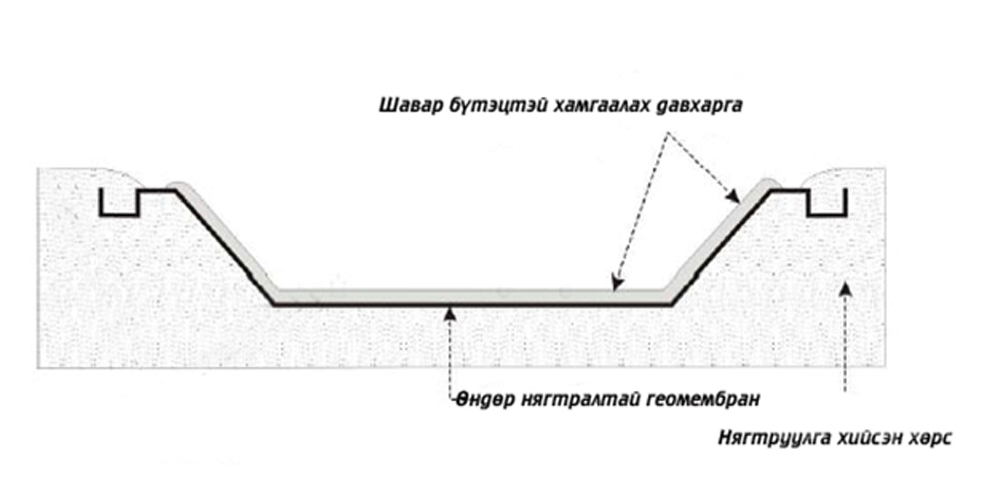 Ийнхүү чанартай материал ашиглан, текникийн үзүүлэлт өндөртэй төхөөрөмжөөр хаягдал усны сангийн доторлогоог хийх нь: