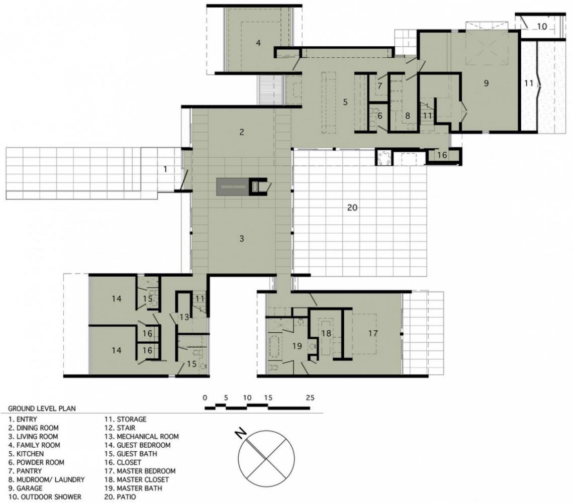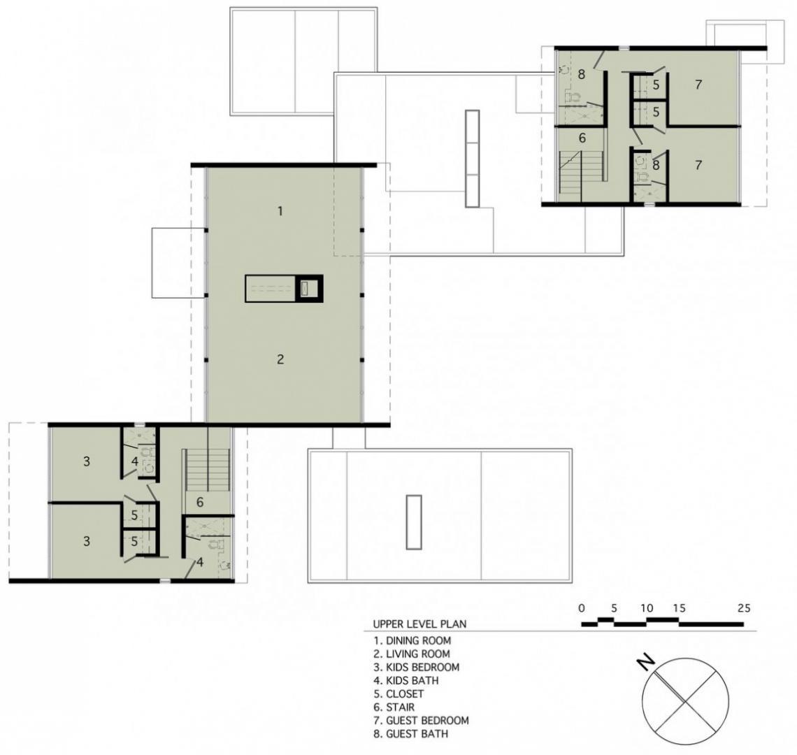 Уран барилгын “Батес Маси” студид ажил хэрэгч нэгэн гэр бүл захиалга өгөхдөө гэртээ цэнгүүн зохион байгуулах үед хүүхдүүдийг зочдод саад учруулахгүйгээр тоглож наадуулах, мөн зочид гэр бүлийн амралтанд төвөг учруулахгүйгээр ирж, буцах зэрэг олон үйл явцыг бэрхшээлгүйгээр шийдэж байх байшин барьж өгөхийг хүсчээ. Энэ хүсэлтийн дагуу сууцыг урдаас хойшоо харагдахуйц корридорын хэсэг гарган талбайг диаграммчилж 2 хуваасан. Сууцны нэвт харагдах байдал нь олон үйл явцыг нэгэн зэрэг хянах боломжийг өгөх ба зочдод ч мөн тааламжтай байдлыг бий болгоно.
