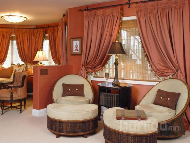 Далайн өвсийг ашиглан сандлын доод хэсгийг нэхэж бүрсэн нь өнгөний зохицлийн хувьд нийцэж байна. Өрөөний ерөнхий өнгө нь цайвар улаан бөгөөд хананы өнгөтэйгээ уусаж өгч чаджээ. Цаад хананаас жижиг тусгаарлах ханыг бий болгосон нь харагдацийн хувьд үзэмжтэй мөн өрөөний урт хөшгийг боож цонхоор гэрэл оруулж иржээ. Энэ нь өрөөг илүү үзэмжтэй, дизайныг гь илтгэж өгч байна.
