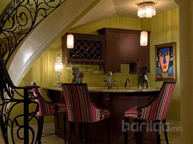 Өрөөний шалыг шилмүүст модон паркетээр хийж дээрээс нь Перс хивс дэвссэн, ингээд биллиардын ширээ зэргийг байрлуулсан ер бусын сонин шийдэл нь гэ бүлд эрч хүчийг өгөх нь дамжиггүй ээ.