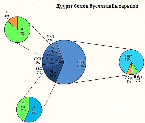 Мөн түүнчлэн дан ганц дүүргээр ангилж судалгаа хийх нь учир дутагдалтай байгаа бөгөөд манай энэ удаагийн судалгааны онцлог нь бүсчилсэн судалгаан дээр үндэслэснээрээ давуу талтай болсон.