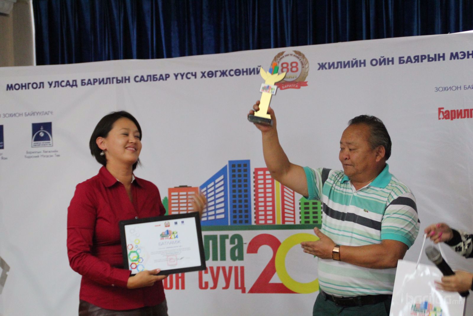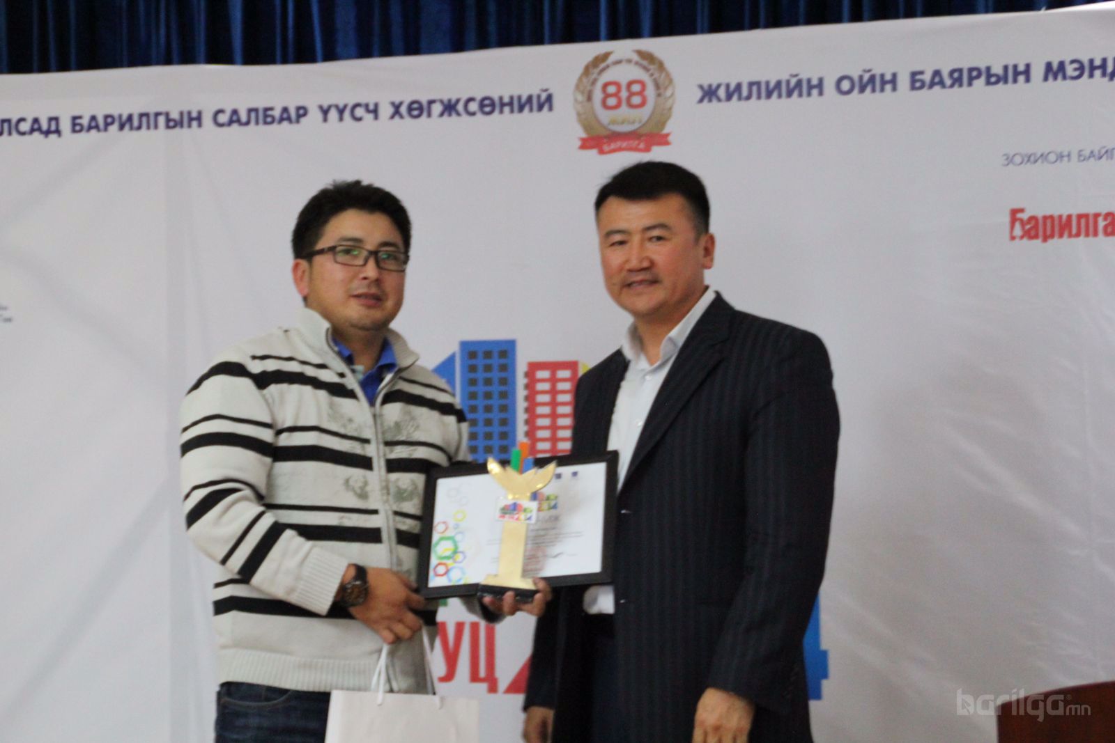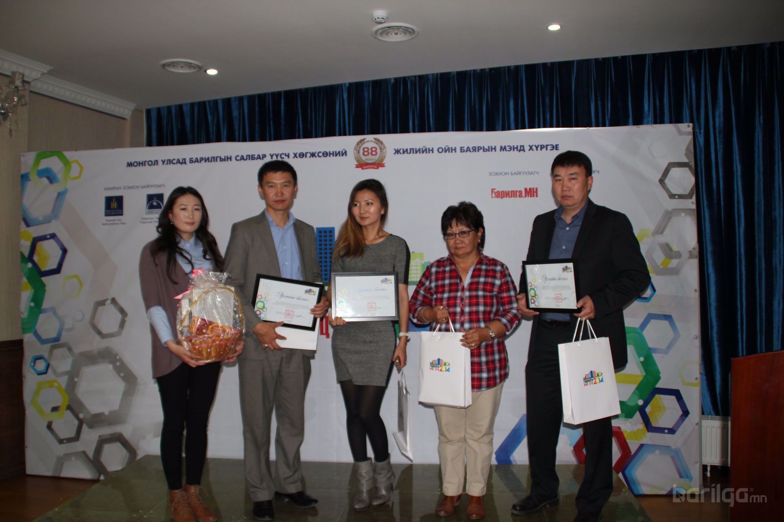 “Мишээл экспо” төвд 3 өдрийн турш амжилттай үргэлжилсэн “Барилга-Орон Сууц 2014” үзэсгэлэн яармаг өчигдөр шилдэгүүдээ шалгаруулсан юм. Монгол улсад Барилгын салбар үүсч хөгжсөний ойн баярыг тохиолдуулан жил бүр уламжлал болгон зохиогддог энэхүү үзэсгэлэн яармаг 7 дахь жилтэйгээ золгож байгаа нь энэ бөгөөд нийт 120 гаруй аж ахуйн нэгжүүд оролцож төсөл хөтөлбөр, бараа үйлчилгээгээ дэлгэсэн. Эдгээр 120 аж ахуйн нэгжээс 5 номинацид шилдэг аж ахуйн нэгжийг шалгаруулсан бөгөөд эдгээр шилдгийн танилцуулбал: